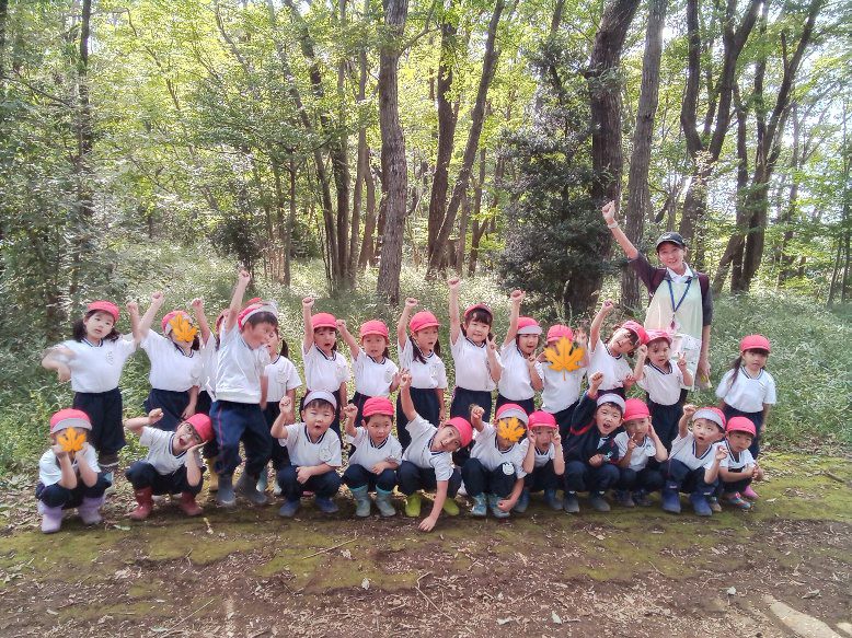 森でのどんぐり拾いでも「おーーー!!!」