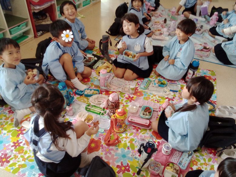 皆で教室でも遠足みたいにお弁当