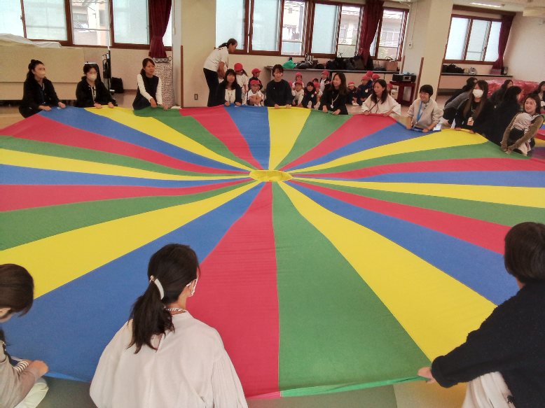 保育参観日には、保護者の方にもパラバルーンを体験していただきました。