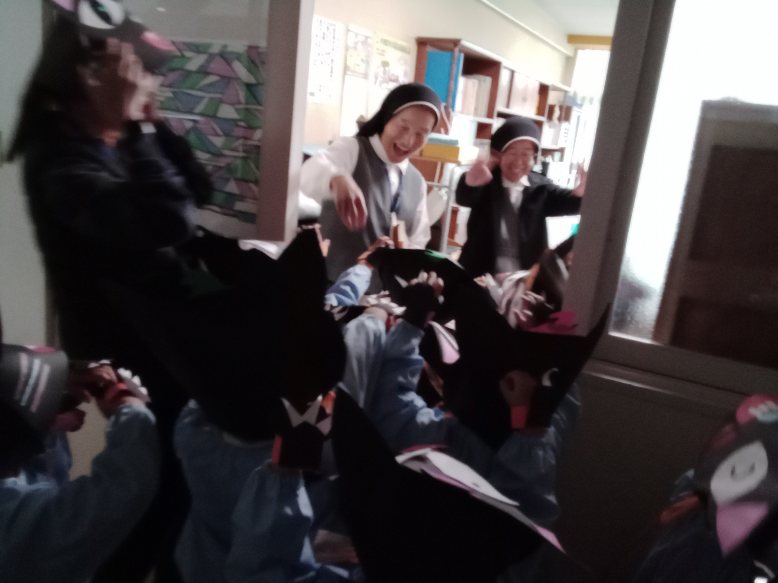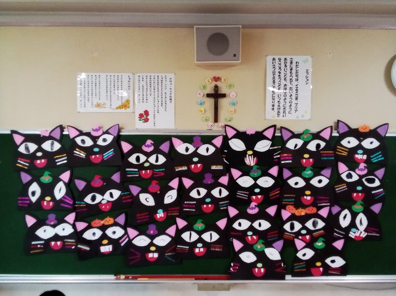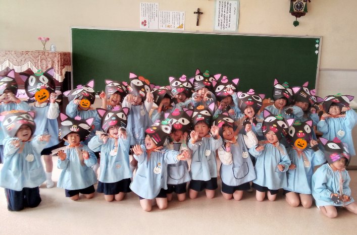 しろばら組は、化け猫の帽子を作って変身しました。爪を切って貼り、猫の手も作りました。