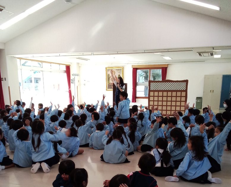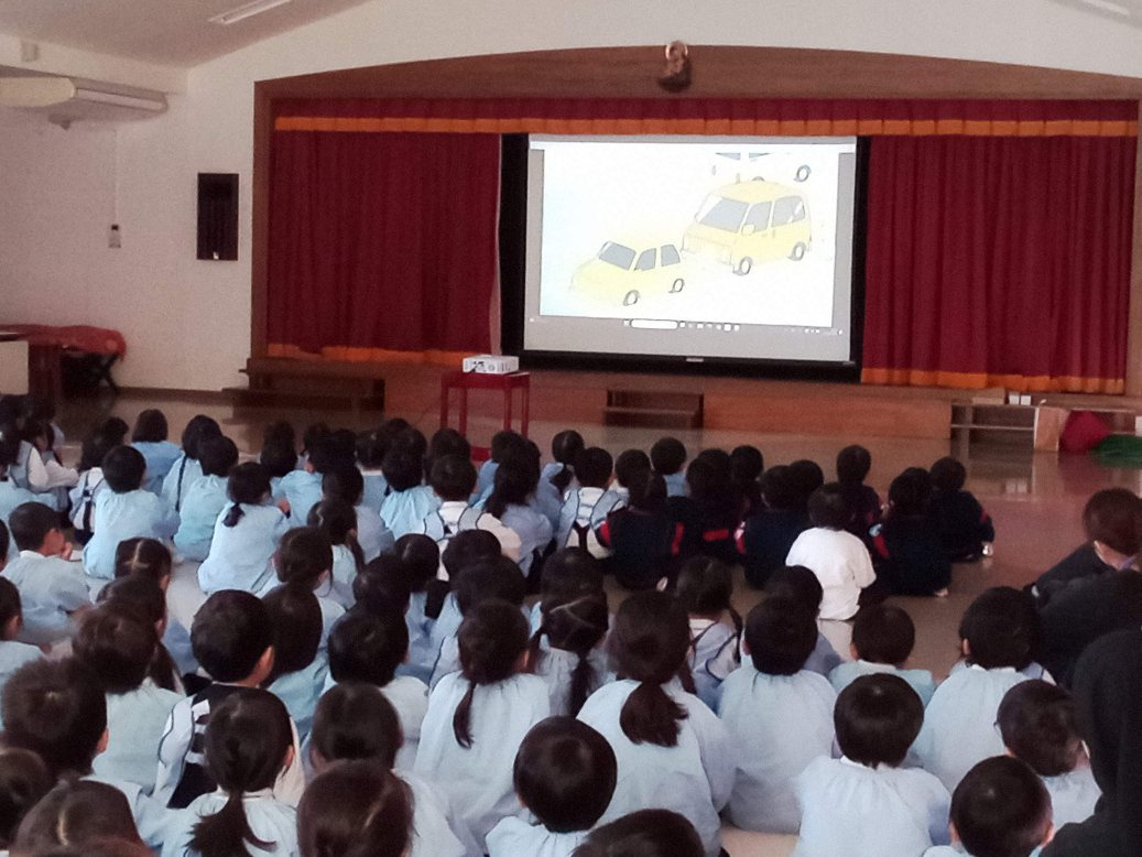 子どもたちはお話をよく聞きながら、信号の渡り方交通ルールを学んでいました。