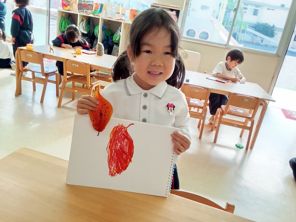 お散歩で拾った葉っぱをお部屋に持ち帰って、型をとって観察。