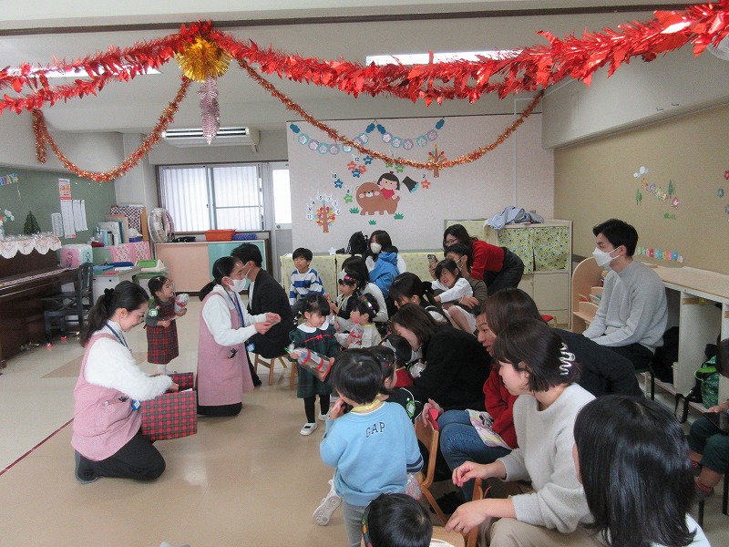 一人ずつプレゼントを受け取り、幼稚園からも良い子のみんなにプレゼント