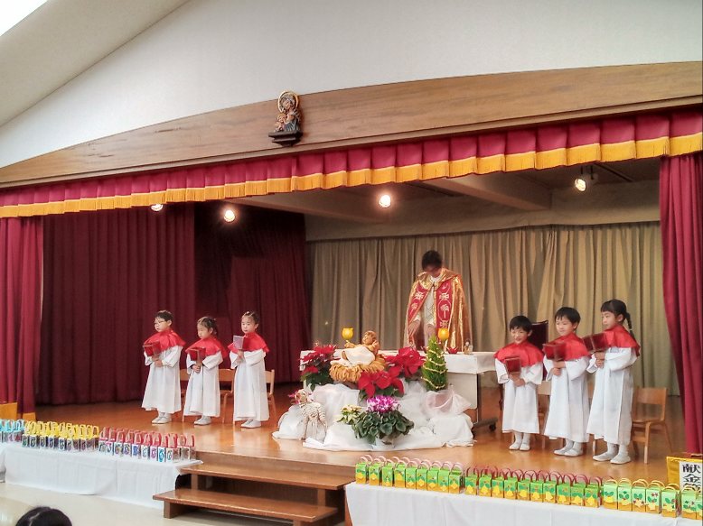 今年は本部聖堂の改築工事に伴い、幼稚園の遊戯室に場を移して、