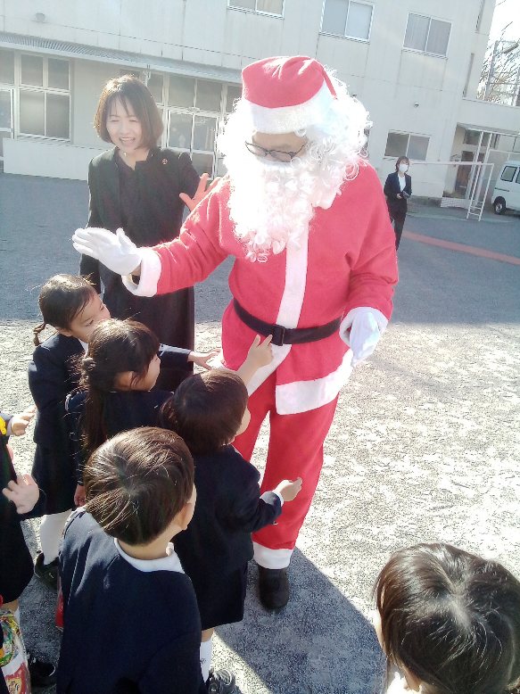 近くで見るサンタさんに、目を輝かせる姿が印象的でした。