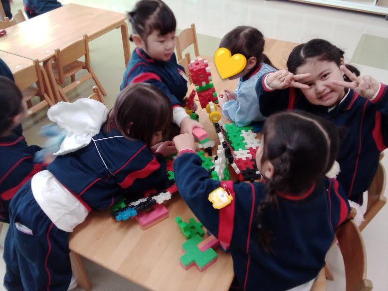 お部屋では仲良しのお友達とブロックをしたり