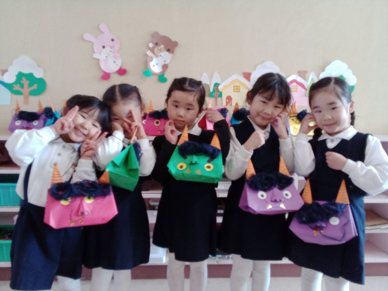 「優しいおに」「こわい顔のおに」色んな顔の鬼ができました