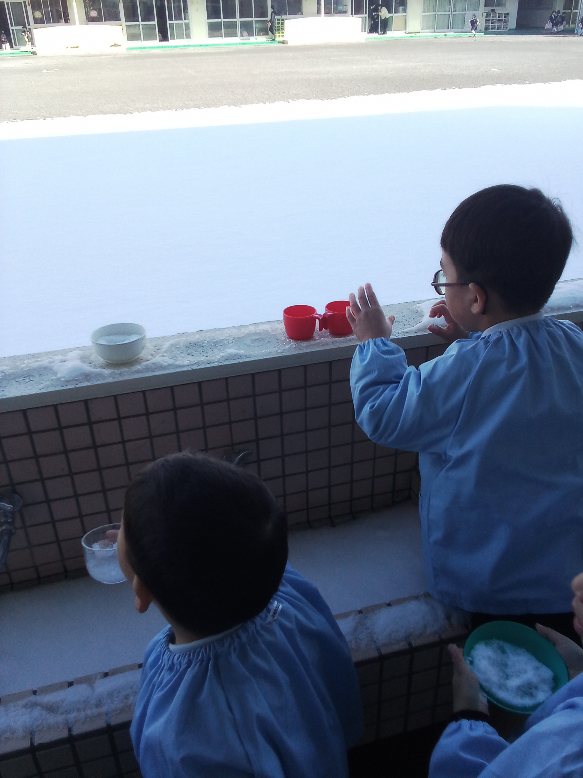 「冷たいねぇ」「硬いねぇ」「溶けてきた」とかわいい歓声が
