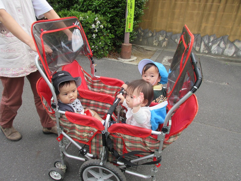 今日は春の遠足!たんぽぽ組さんは初めてのバギーに乗って