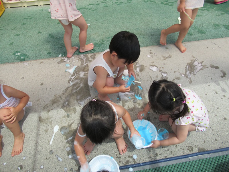 プールの中に泡を入れたり、体に泡をつけたり色々な楽しみ方ができました‼