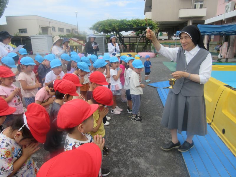 夏の遊びを満喫できるよう、職員も神様に祈りながら、