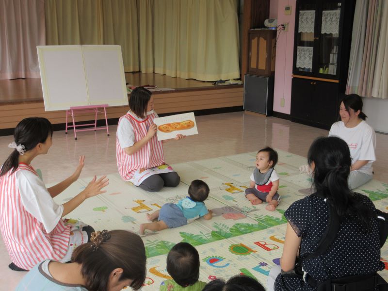 子どもたちが大好きな絵本「ぽんちんぱん」の読み聞かせをしました。