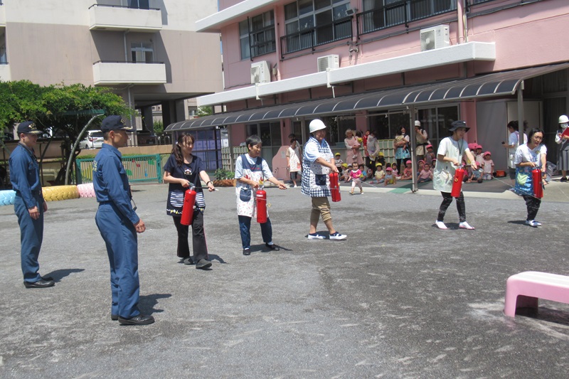 先生たちも、消火器訓練をしました。