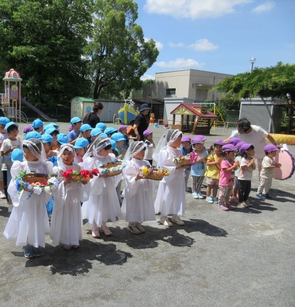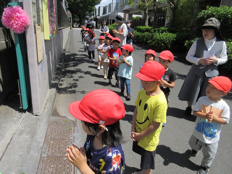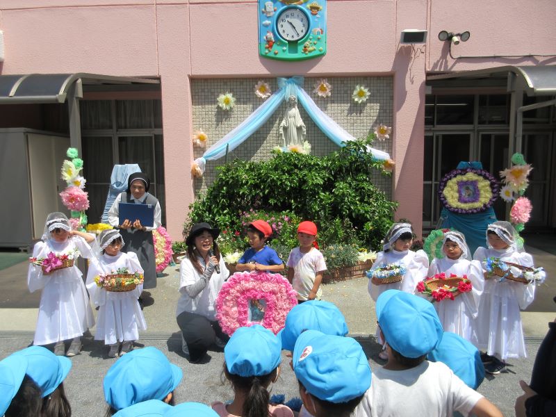 園庭でも、きれいに飾られたマリア様がお出迎え。