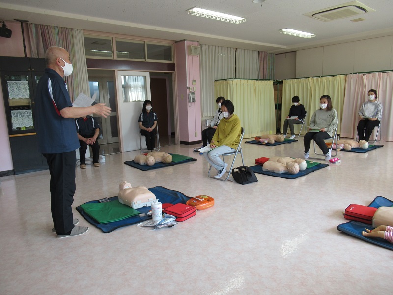 ホールでの全体会では、主任が今年度の行事予定等を話し、