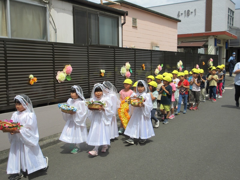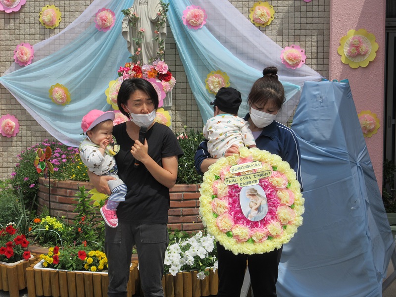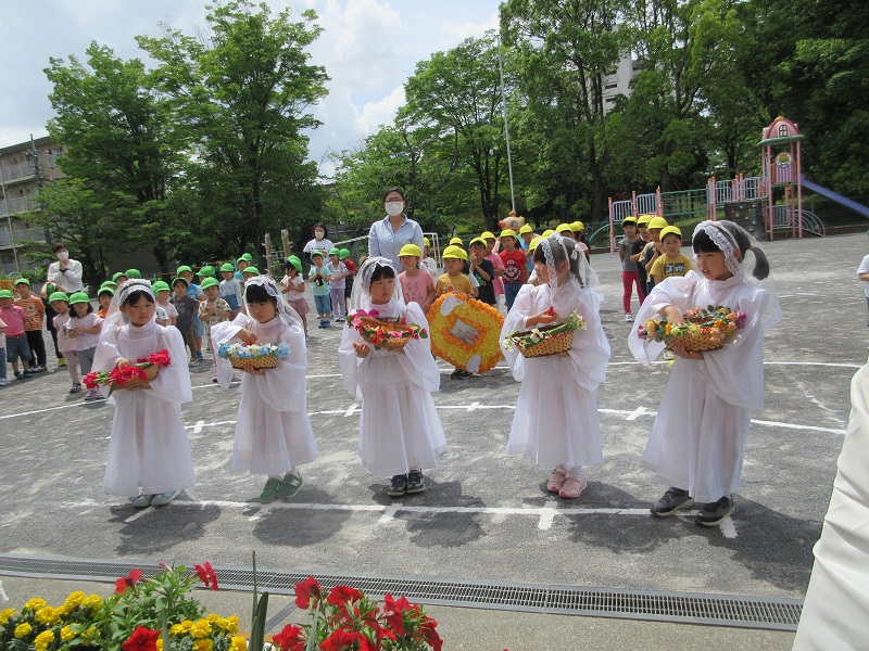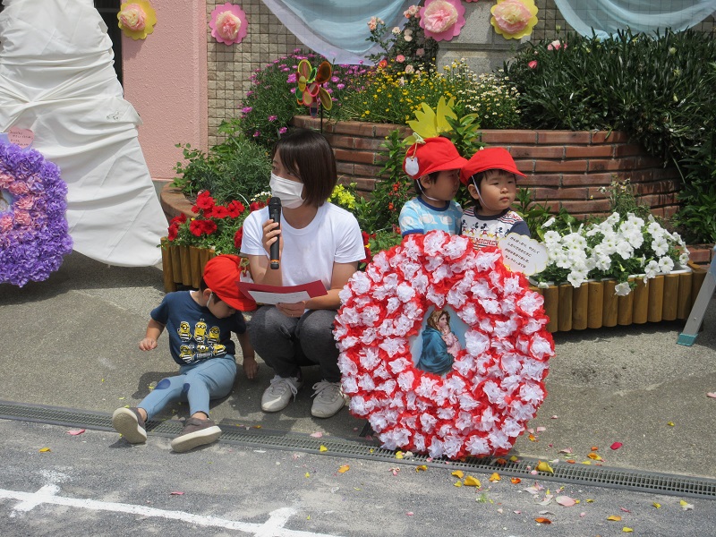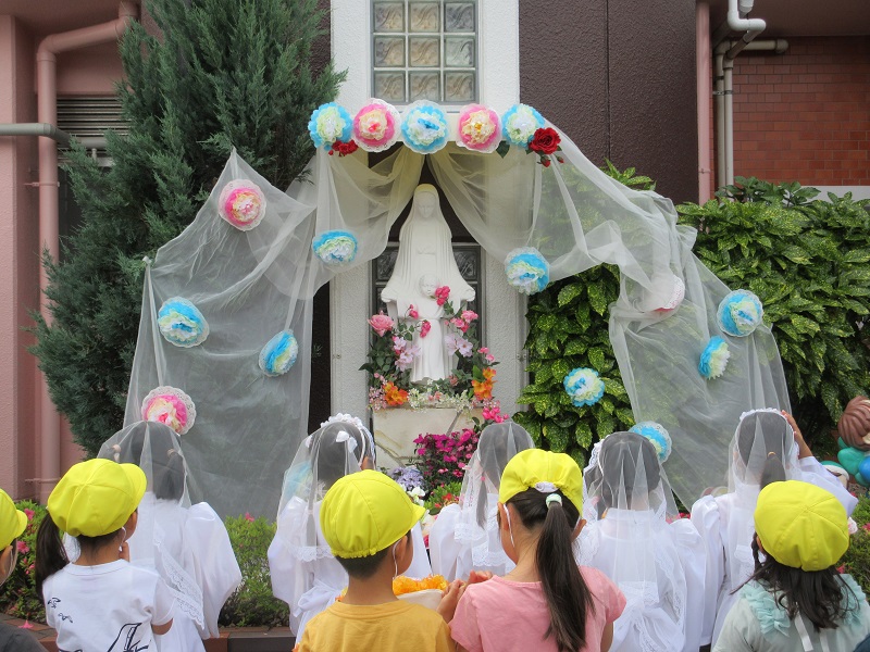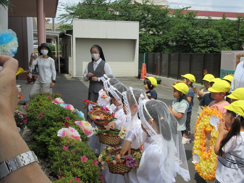 5月26日(木)お天気にも恵まれた中、マリア様に「ありがとう」と、お祝いの気持ちを込めて聖母際が行われました。