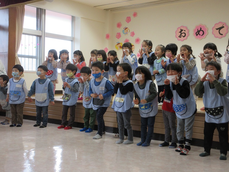 ゆり組さんから、心のこもった6歳のうた。そしてかおり保育園園歌。