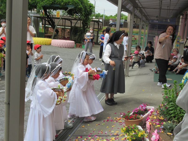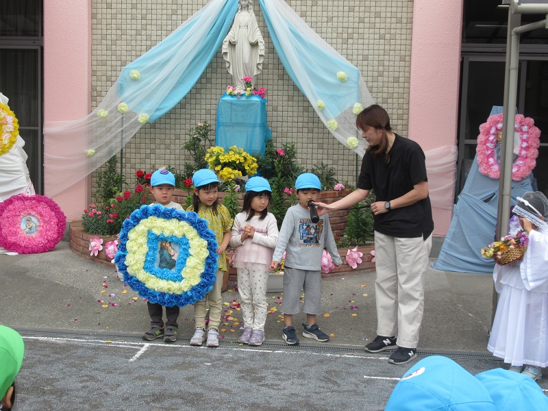 正門のマリア様も素敵に飾られて、とっても嬉しそうです。