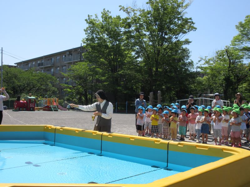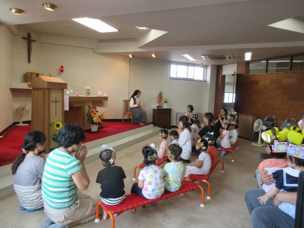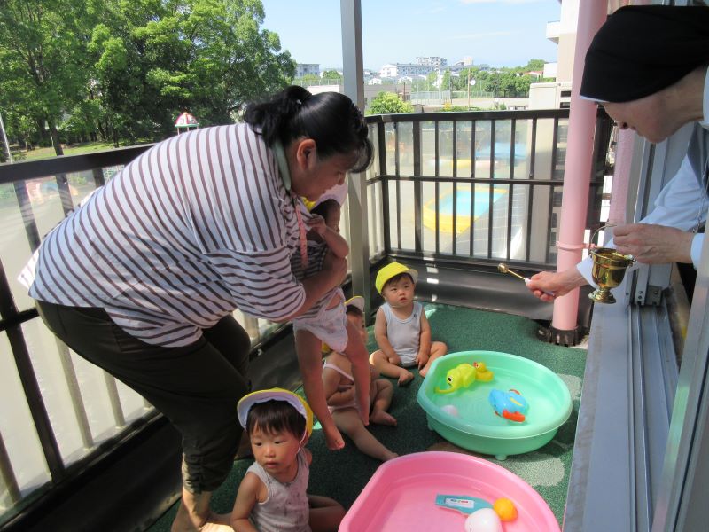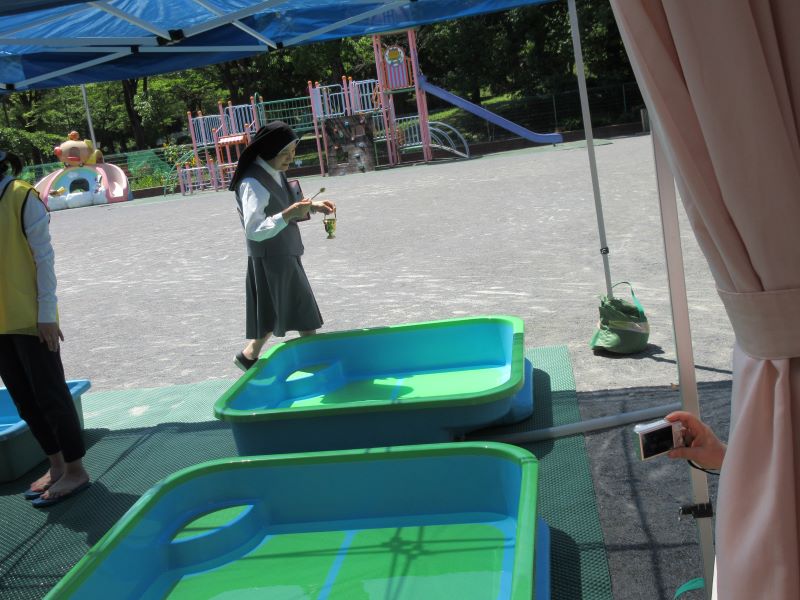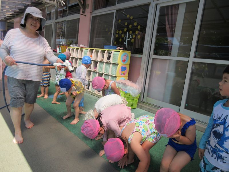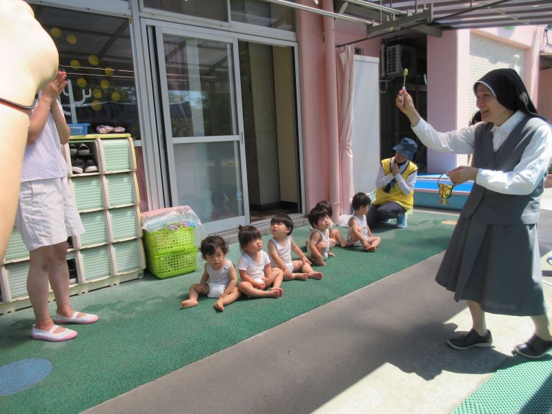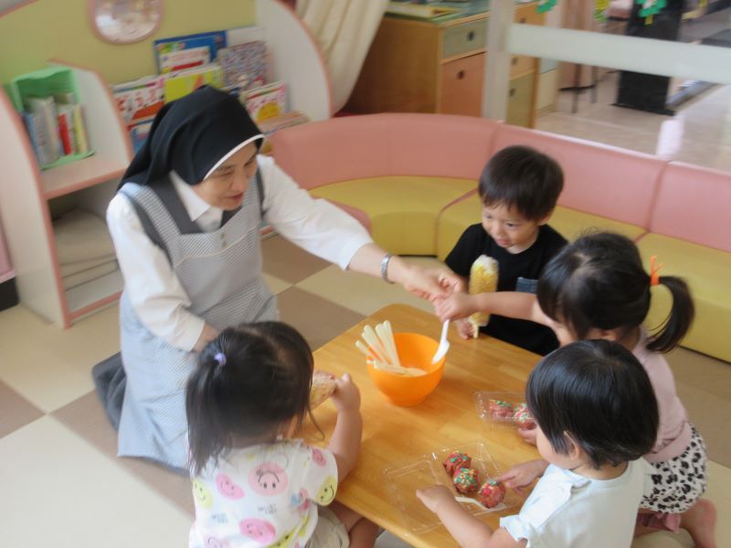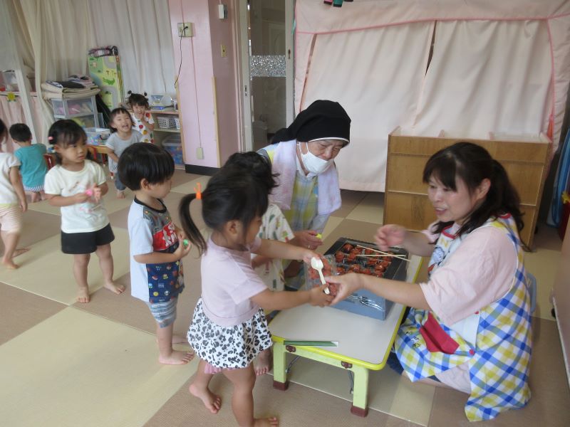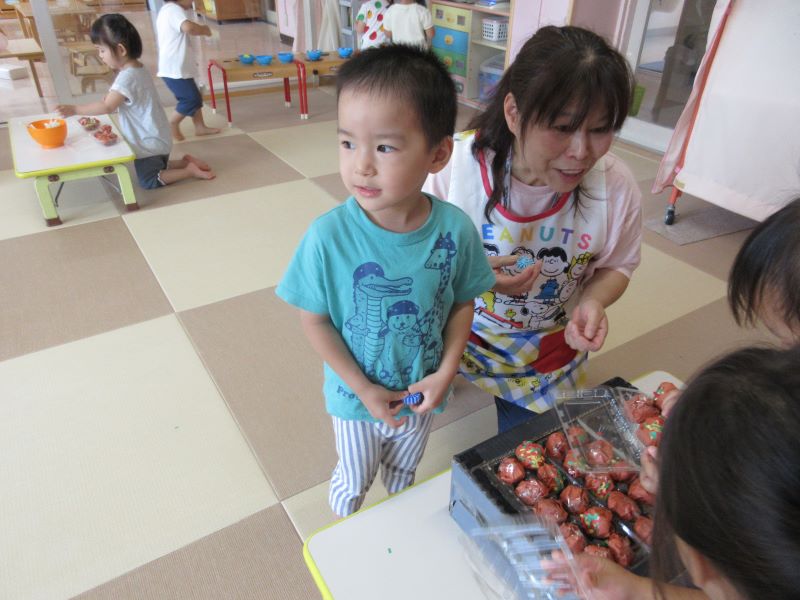 今日は2歳児クラスで夏祭りごっこをしました。