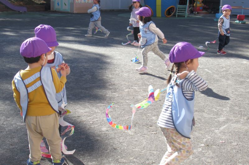 お休み明けはさっそく寒さに負けず凧あげ大会をしました。