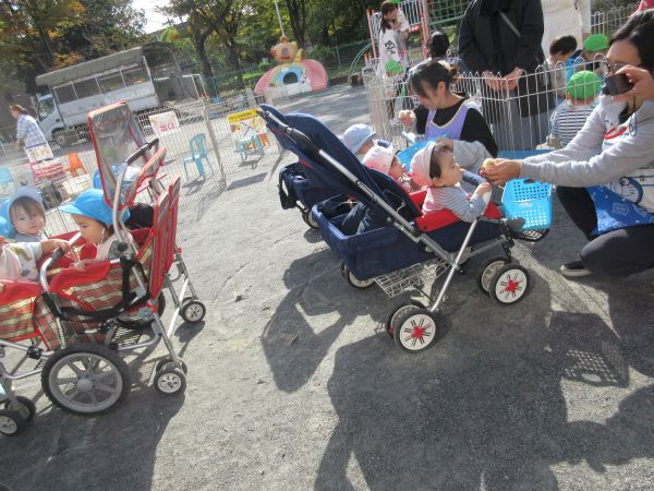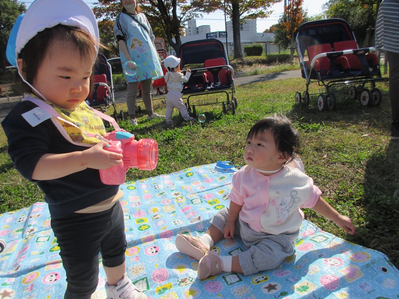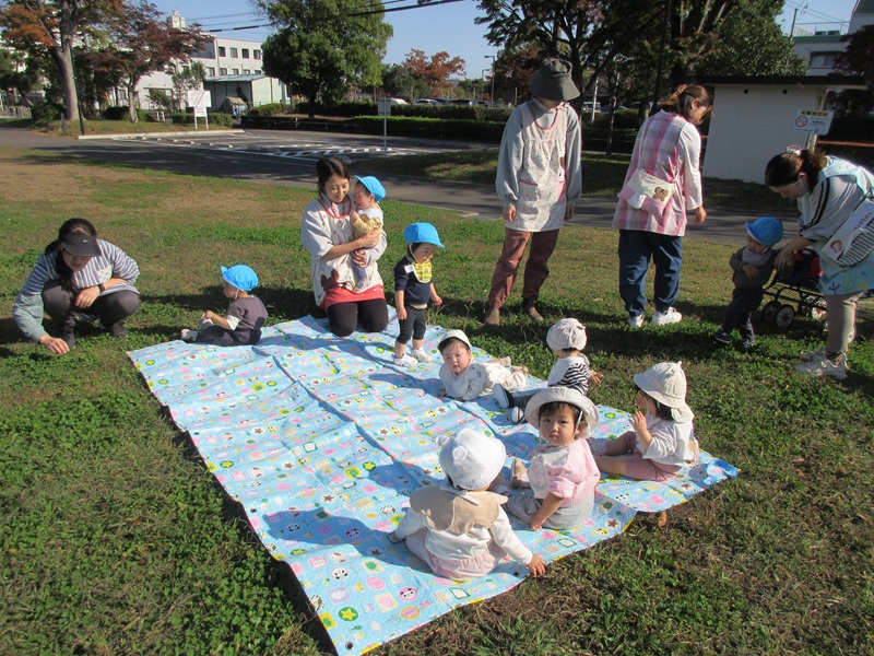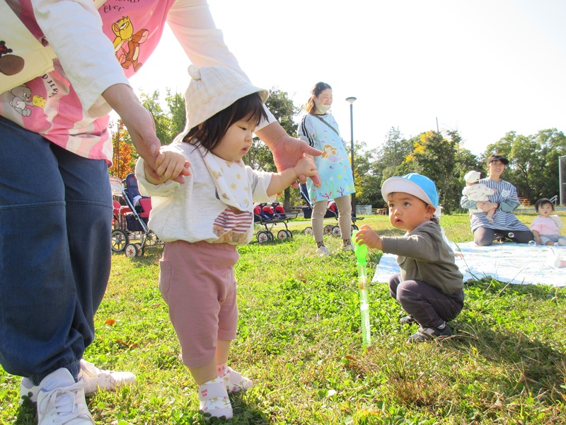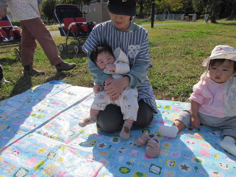 秋の遠足、4歳児ばらぐみと5歳児ゆりぐみは、合同で多摩中央公園に行きました。