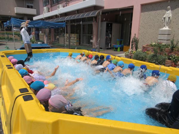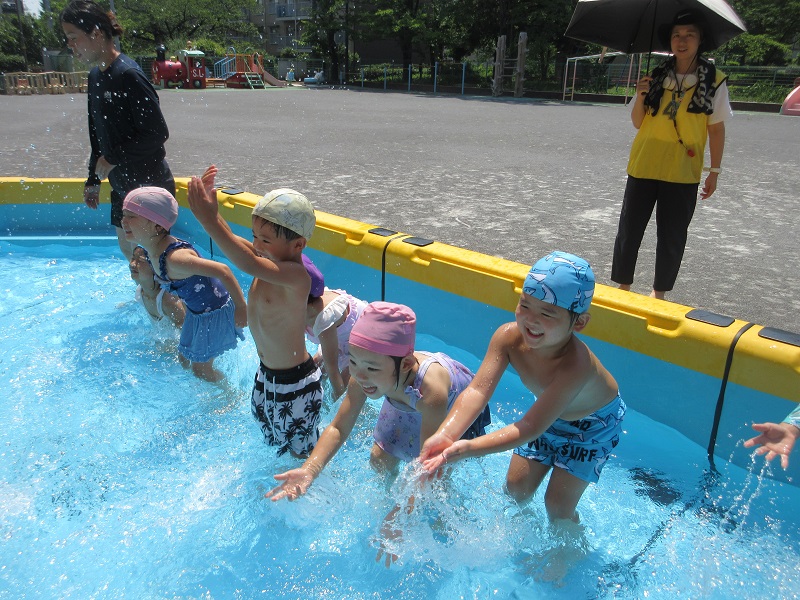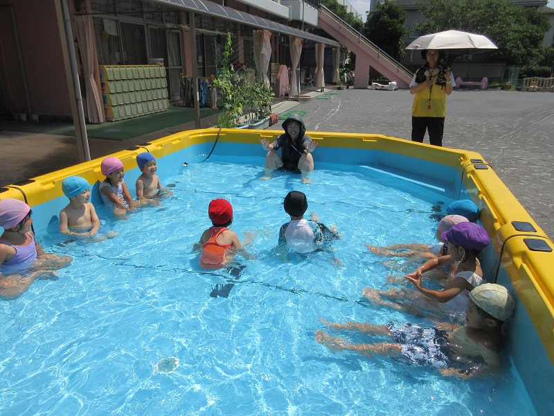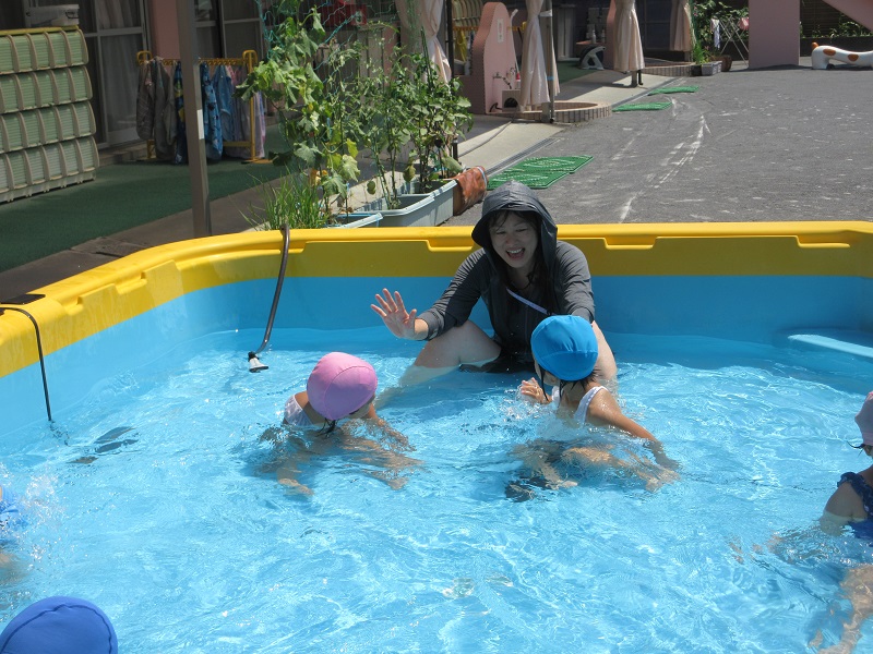この日は体操指導の講師の先生も一緒のプールあそびでした。