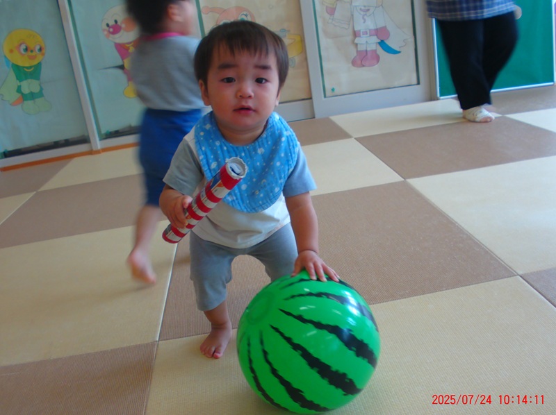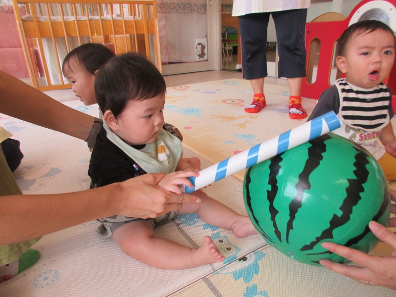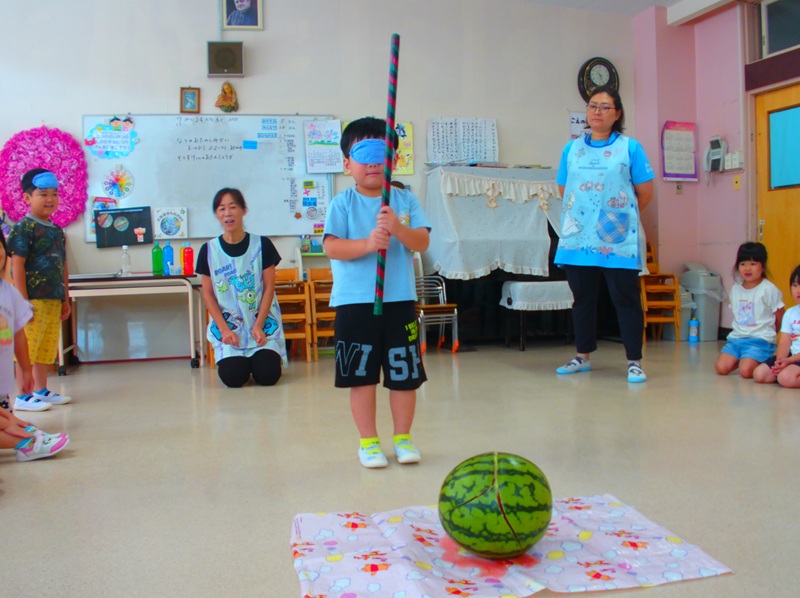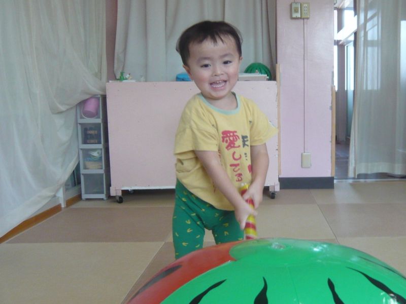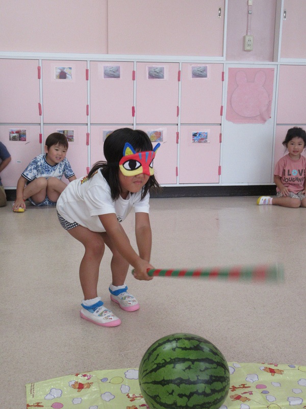ポンポンスイカをたたいてすいか割もたのしみました。(やったね!)