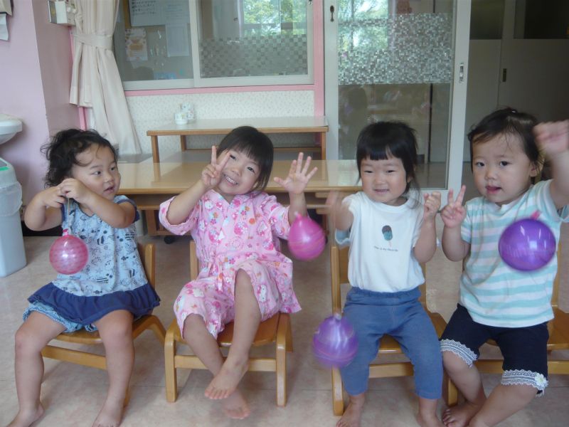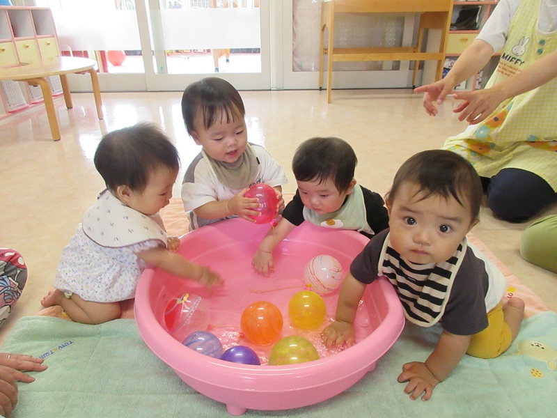 お水遊びが大好きなすみれ組さん!たくさんのヨーヨーや
