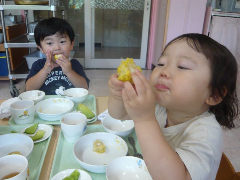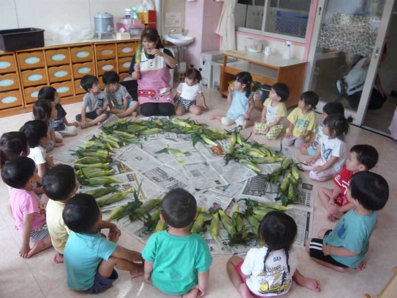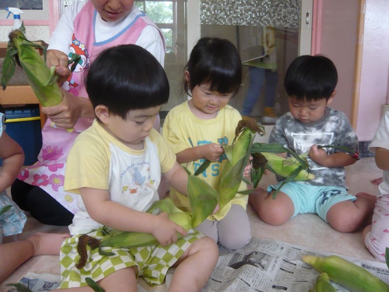 とうもろこしの黄色いお顔が見えると「わぁ~!」と喜ぶ声が聞こえてきました。