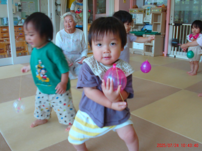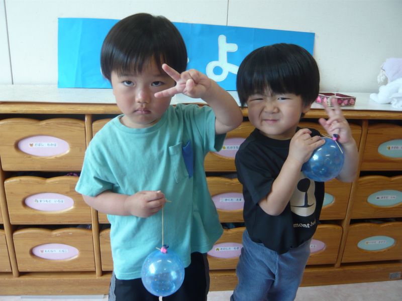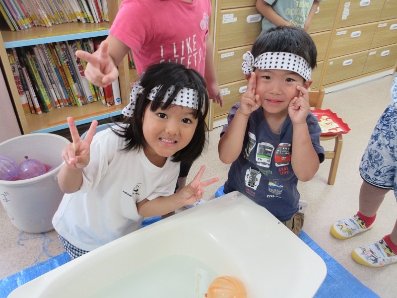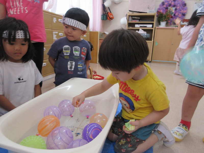 夏と言えば、ヨーヨーつり。キラキラしているヨーヨーにみんな嬉しそうにしていました。