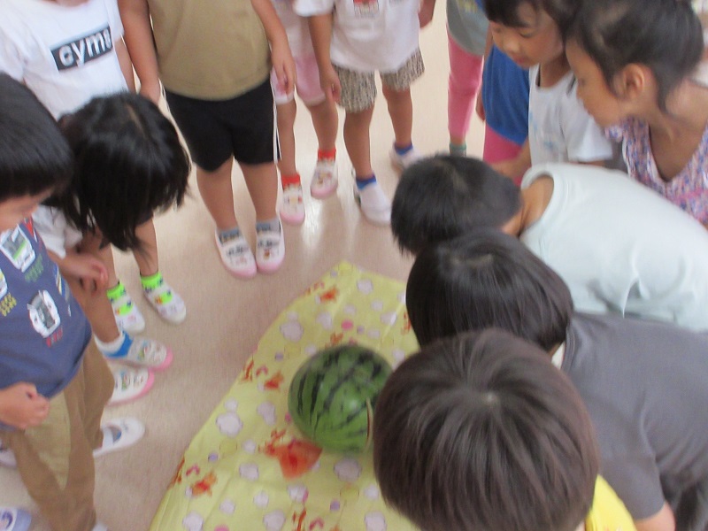 「あっ!すいかだ!」「うわ~!」「やったー!やったー!」