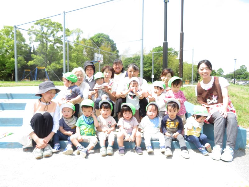 遊んだ後は保育園に帰る前にみんなで記念写真!