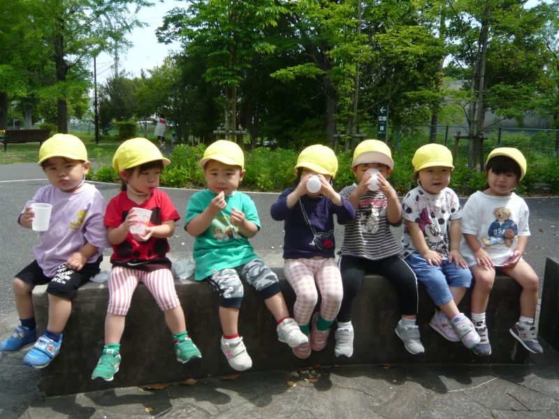 お天気にも恵まれて春の遠足に出発です!いつも行っている落合南公園でしたが公園で食べるおやつは「おいしー!」と子どもたちは大喜びでした!