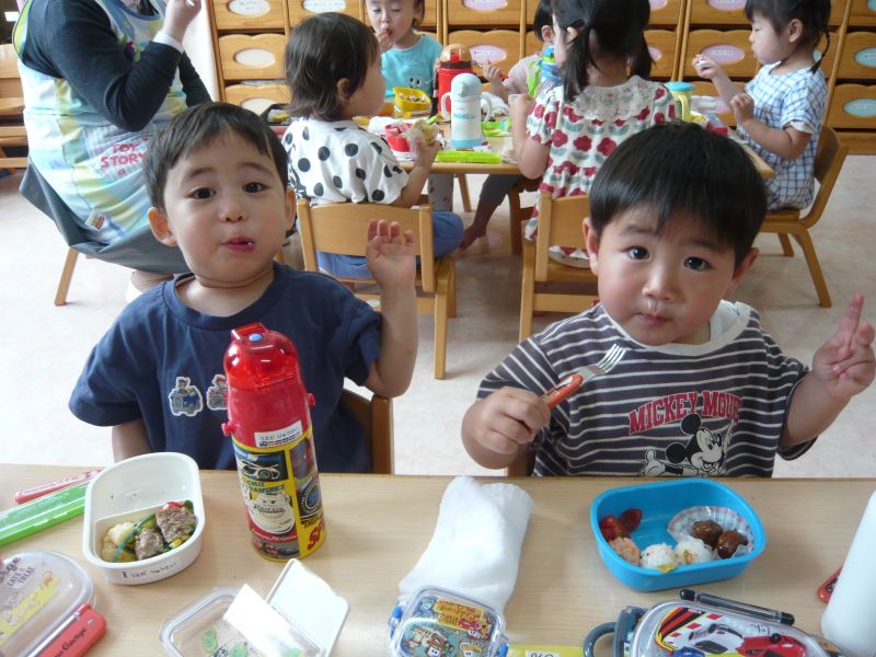 保育園に戻った後は待ちに待ったお弁当タイム♪
