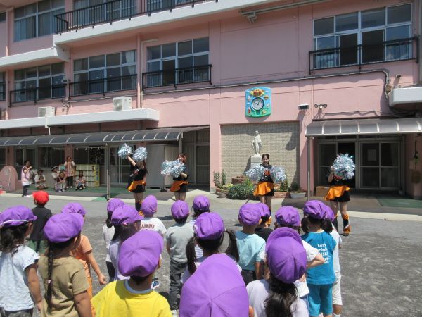先生たちが吹いたしゃぼん玉を追いかけたり、