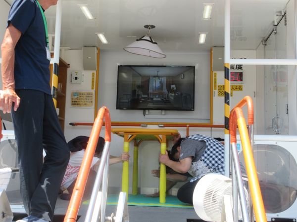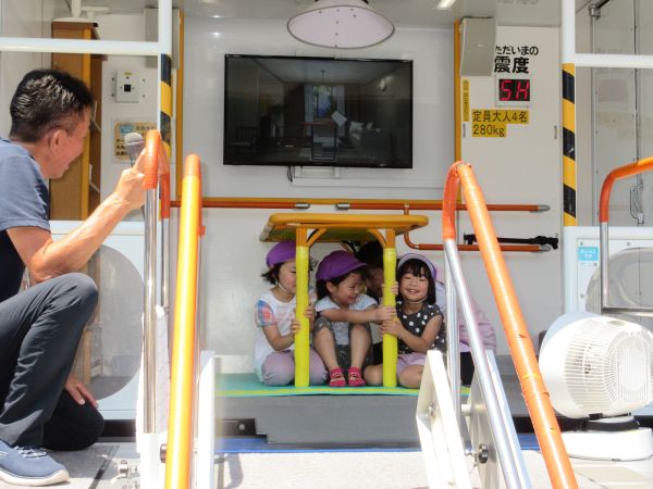 震度7を体験。子どもたちは自身の大きさに緊張の表情。