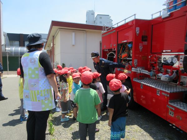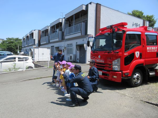 ポンプ車も来てくれました。子どもたちは興味津々で