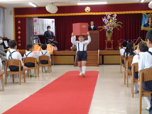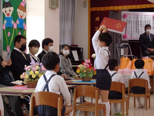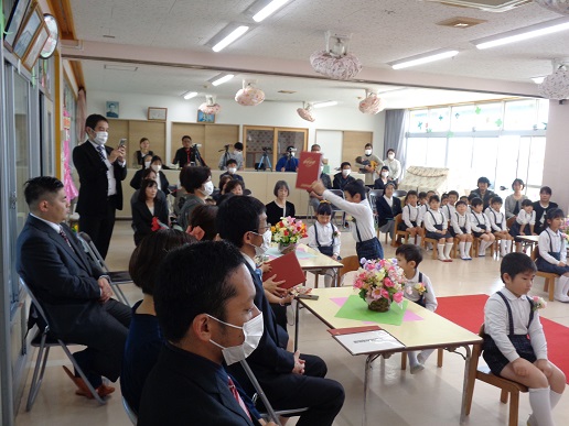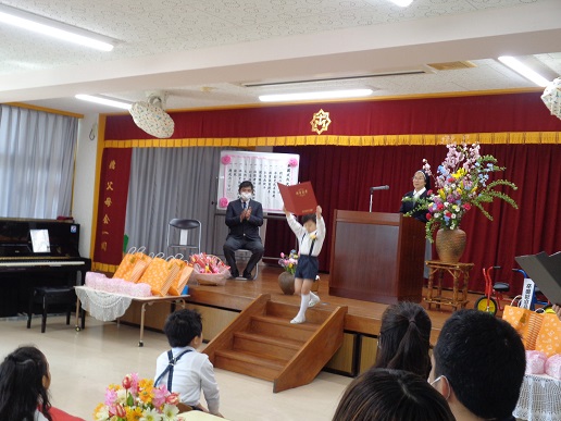 家庭的で温かく和やえのかな雰囲気で行われ、11名の子ども達が胸を張って、保育証書を授与されました。