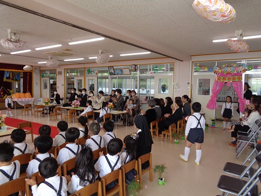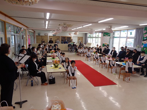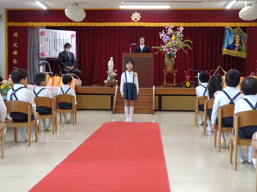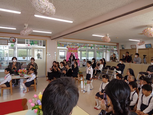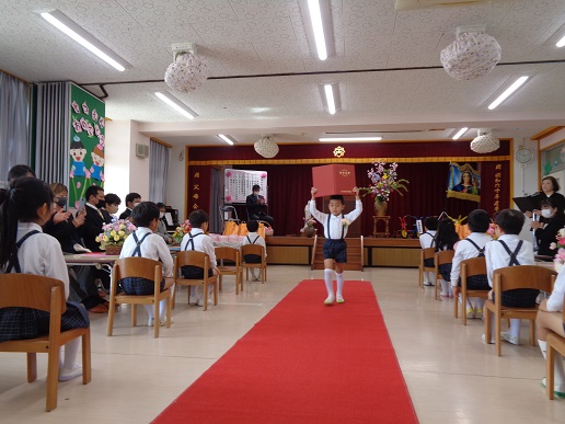 ひとりずつ名前を呼ばれると、元気よく返事をし、堂々とした姿、そして年中組とのお別れの言葉、お別れの歌等、立派な子ども達の姿。