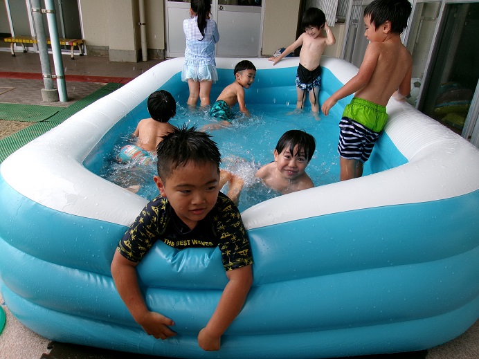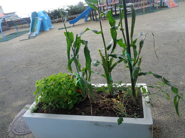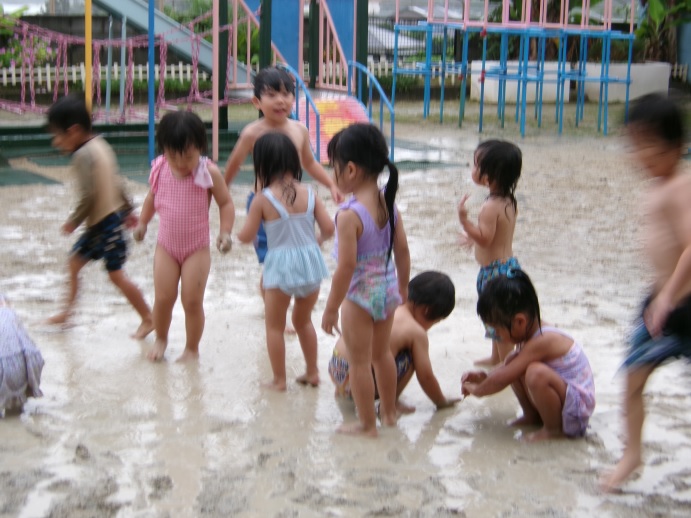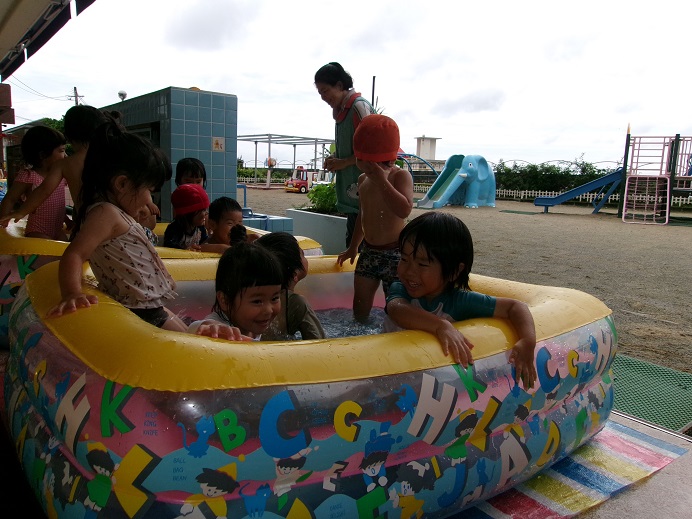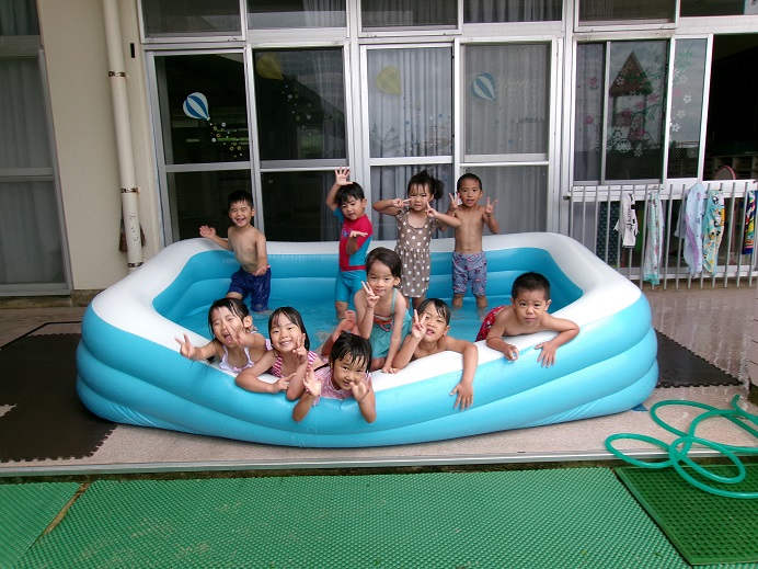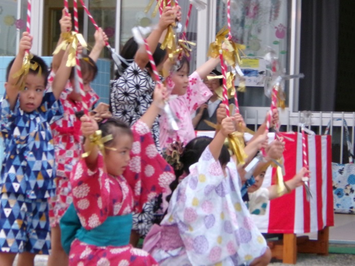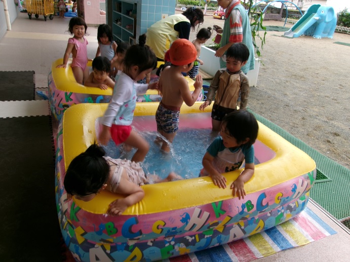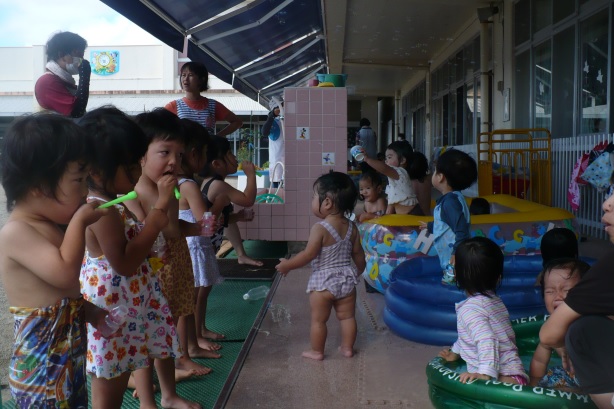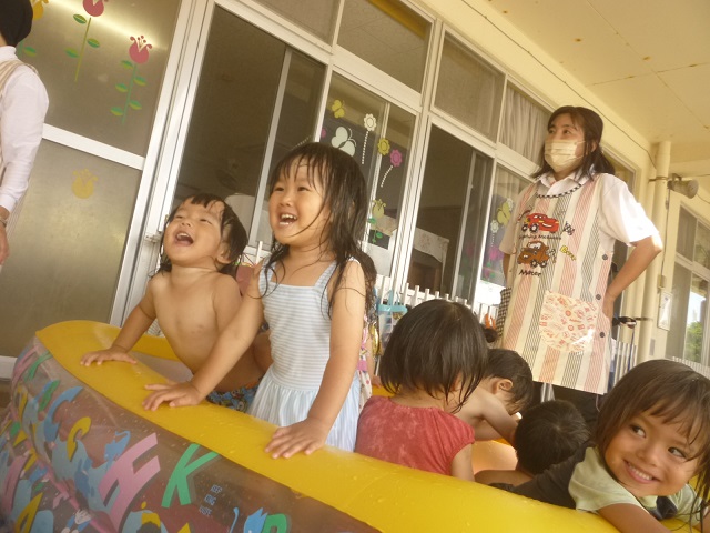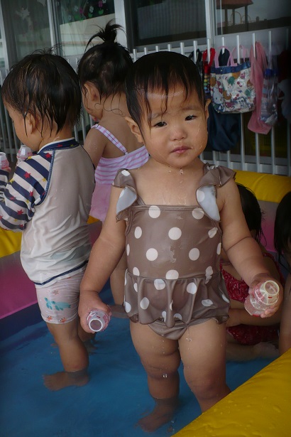 0・1才児は、荷物を引っ張って風車を取りに行くゲーム。 1才児は、ひとりで上手に引っ張り、好きな風車を選び、0才児はハイハイが上手で、とてもかわいかったです。