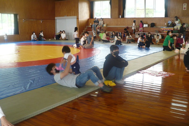 予定では、アヤマル公園でしたが、朝方まで雨が降り、雨もあったため、太陽が丘の武道館に場所を変更し、春の親子遠足を行いました。