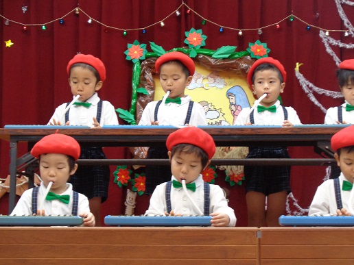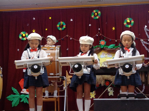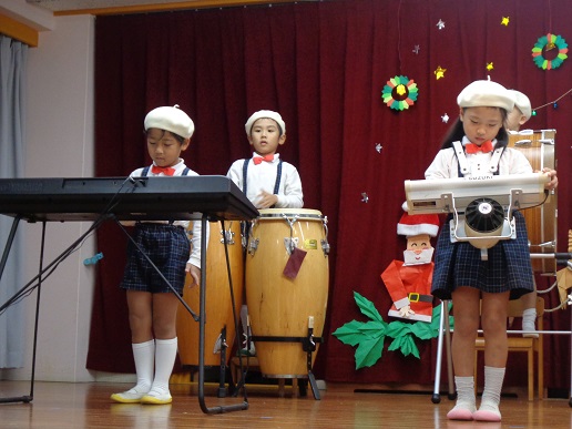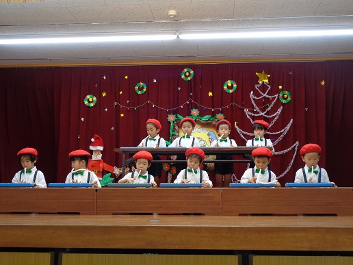 遊戯やリズム発表(合奏)等、クリスマス発表会に向けて子ども達は練習を頑張りました。