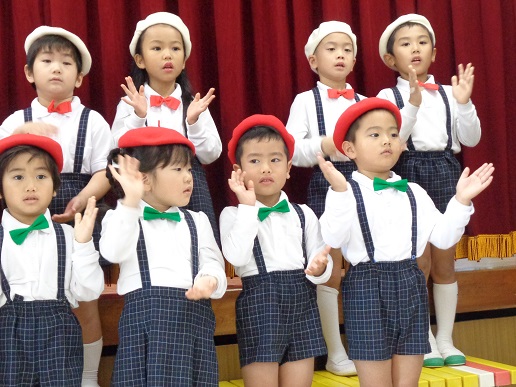 ひとりずつ名前を呼ばれると、元気よく返事をし、堂々とした姿、そして年中組とのお別れの言葉、お別れの歌等、立派な子ども達の姿。