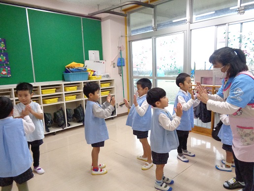 新学期が始まりましたl。子ども達は進級、入園し、新しい環境にワクワクした気持ちの子・親から離れる淋しさで泣き出す子…とそれぞれの姿がありました。「○○ぐみさん!」と呼ばれると、「?」とした表情をみせ、まだ新しいクラスの名前に慣れていない子ども達でしたが、1週間たつとすっかりなれ、しっかりとした挨拶や返事が出来ていました。