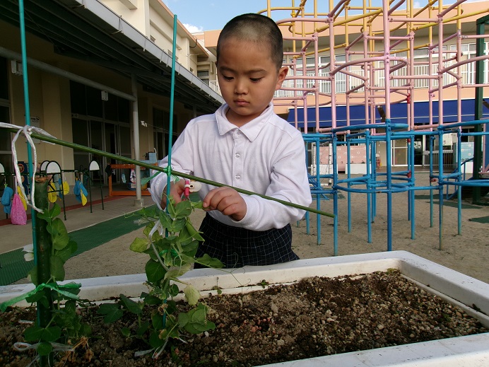 以上児クラスでは、夏野菜の苗(ピーマン・ナス・トマト・オクラ)を植え、水やりや草取り等のお世話が始まりました。「おおきくなあれ!」と魔法の言葉をかけながら大きくなるのを楽しみにしています。