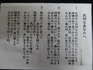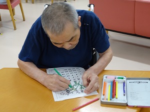 エントリー 学生さんと一緒に 2019/07/13 17:14 まなざし 今日は、日向学院の学生さんがボランティアに来てくれました。 切り捨て作業をしたりゲームをしたり。私も幼い頃、家族でしていました。ダイヤモンドゲーム。学生さんも先生も真剣です!! この記事のURL 書道クラブ 2019/07/10 10:08 まなざし 書道クラブです。筆で文字を書くのは難しいですが、皆さん、本当にお上手です。 この記事のURL 華道クラブ 2019/07/09 10:04 まなざし 今日は、アンスリューム、ひおうぎ、ドラゴン柳を生けてみました。 初めて知る生花がありますね!! この記事のURL 誕生食 2019/07/08 12:02 まなざし 今日、8日は利用者さん2名の方のお誕生日。昼食時にお祝いをしました。 2名が大好きなお刺身や煮つけなど皆さんで一緒に召し上がりました。 職員から「いつまでも太陽のような素敵な笑顔でいて下さいね!」と温かいメッセージが伝えられました。 この記事のURL 訪問理容 2019/07/08 10:13 まなざし 今日は、月に1度の訪問理容日。髪を切っている方々を見ながら「あたしも切ろうかな!」と利用者さんが集まります。 こちらでは、足の爪を整えてくれています。幸せですね(^^♪ この記事のURL ☆七夕☆ 2019/07/07 19:20 まなざし 7月7日は七夕。きっと皆さんのお願い事が叶うでしょう。夜空もとても綺麗です。天の川が見えたのではないでしょうか?? この記事のURL 手作業!! 2019/07/06 15:07 まなざし 縦、横、斜めと木の積み木を積み上げています。 「何階建ての家ができますかね?」と聞くと「4階建て!!」と大きな家を造っています(^^♪ この記事のURL ぬり絵作業 2019/07/02 13:58 まなざし 男性利用者さんが黙々と作業をしています。7月のカレンダーの色ぬりです。 この記事のURL 大切なあなたへ 2019/07/01 16:44 まなざし 素敵な歌詞ですね。夕のお祈りでも利用者さんと一緒に歌っています。 神様は必ずあなたを見ていますよ。 この記事のURL 七夕の準備 2019/06/30 10:30 まなざし 早いもので6月も終わり。もう7月を迎えます。 7月は七夕。七夕の飾りつけや短冊にお願い事を書いて下さっています。 「ちゃんぽんが食べたい」「健康でありますように」と、願い事が叶いますように… この記事のURL