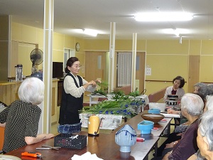 先生の話を聞きながら皆さん、真剣に花を見つめています。