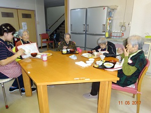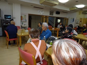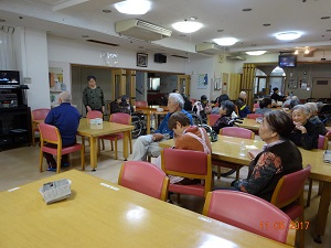 エントリー 一週間が始まりました!! 2017/11/13 09:30 まなざし 外部の方が、毎日、居室のトイレ掃除等をして下さり、いつも気持ち良く過ごす事ができ、感謝しています。 訪問マッサージで、体も心もリフレッシュ!ありがとうございます。第2月曜日は訪問理容で、散髪してスッキリ! この記事のURL 菊の花が綺麗です! 2017/11/12 12:57 まなざし 松の寮の色々な場所に、可憐な黄色の菊の花を生けています。 この作品は、〇〇シスターが包装紙で作りました!パラソルを持った貴婦人です! この記事のURL 学生さんが来た~!! 2017/11/11 14:30 まなざし 土曜日の午後、学生さんと一緒に、窓ガラスや窓の桟の掃除をしました。 「背が高いと、どこまでも届くね~?」 「はい!届きます」 年末の大掃除には、まだ早いですが・・・綺麗になりました。 この記事のURL 今日の昼食は選択メニューです! 2017/11/08 12:15 まなざし マーボー丼! 海鮮丼! チャーシュー丼!皆さん美味しそうに、頂いております! この記事のURL カラオケの後は・・・? 2017/11/05 15:00 まなざし 待ってました!!おやつの時間です。今日は何かなぁ・・・? あんかけ串団子です。 美味しくて、笑顔でパチリ!! この記事のURL 日曜日の午後は・・・? 2017/11/05 13:30 まなざし 食堂でカラオケを楽しみます。 皆さんも曲にあわせて手拍子で盛り上げます。 この記事のURL 昼食・・・パートⅡ 2017/11/05 12:15 まなざし ソフト食です。 ;ソフト食をゆっくりと、ゆっくりといただいています。 特定サービス利用の方の昼食風景です。 この記事のURL 本日の昼食は・・・? 2017/11/05 12:00 まなざし ①パエリア風炊き込みご飯 ②鶏と大豆煮込み ③コンニャクのぬたかけ ④そうめんの清 し汁 ⑤フルーツポンチ 食事の風景です。 この記事のURL 太極拳・・・パートⅡ 2017/11/05 10:30 まなざし 次は足を加えての動きの基本を、先生が行い、皆さん真剣な表情で観ています。 この記事のURL 第一日曜日の午前中は・・・? 2017/11/05 10:00 まなざし 太極拳クラブです。 念入りに準備体操をします。 いよいよ、太極拳の一連の流れを先生と一緒に行います。 この記事のURL