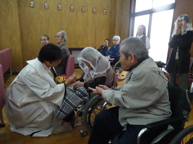 エントリー 復活のお祝い 食事編 2015/04/05 19:26 今日はイースター(ご復活)ということで昼食時に小僧寿しさんに来ていただきました。握りずしやいなり・のり巻きなどごちそうがいっぱい・・・握り寿司を実際に目の前で握ってくださり、利用者さんも大喜び。 利用者さんもそれぞれに好きなものを注文し! いつもと違う雰囲気を楽しんでいます。今日は、いつも以上に食欲がありました。すっすごい! もちろんお変わりOK! この記事のURL 太極拳クラブ 2015/04/05 19:23 まなざし 毎月1・3週の日曜日 太極拳クラブを行っています地域の方も数名参加しています。今日は第三者委員の有馬さんも参加してくださいました。後ろ姿だけだけど… とても真剣に取り組み、熱心な利用者さんです。 この記事のURL 復活のミサ 2015/04/05 19:19 まなざし ご復活おめでとうございます朝7時からの復活のミサに参加しました。 神父様からご聖体・祝福を受ける利用者の皆さん心が満たされ、一日がスタートしました。 この記事のURL