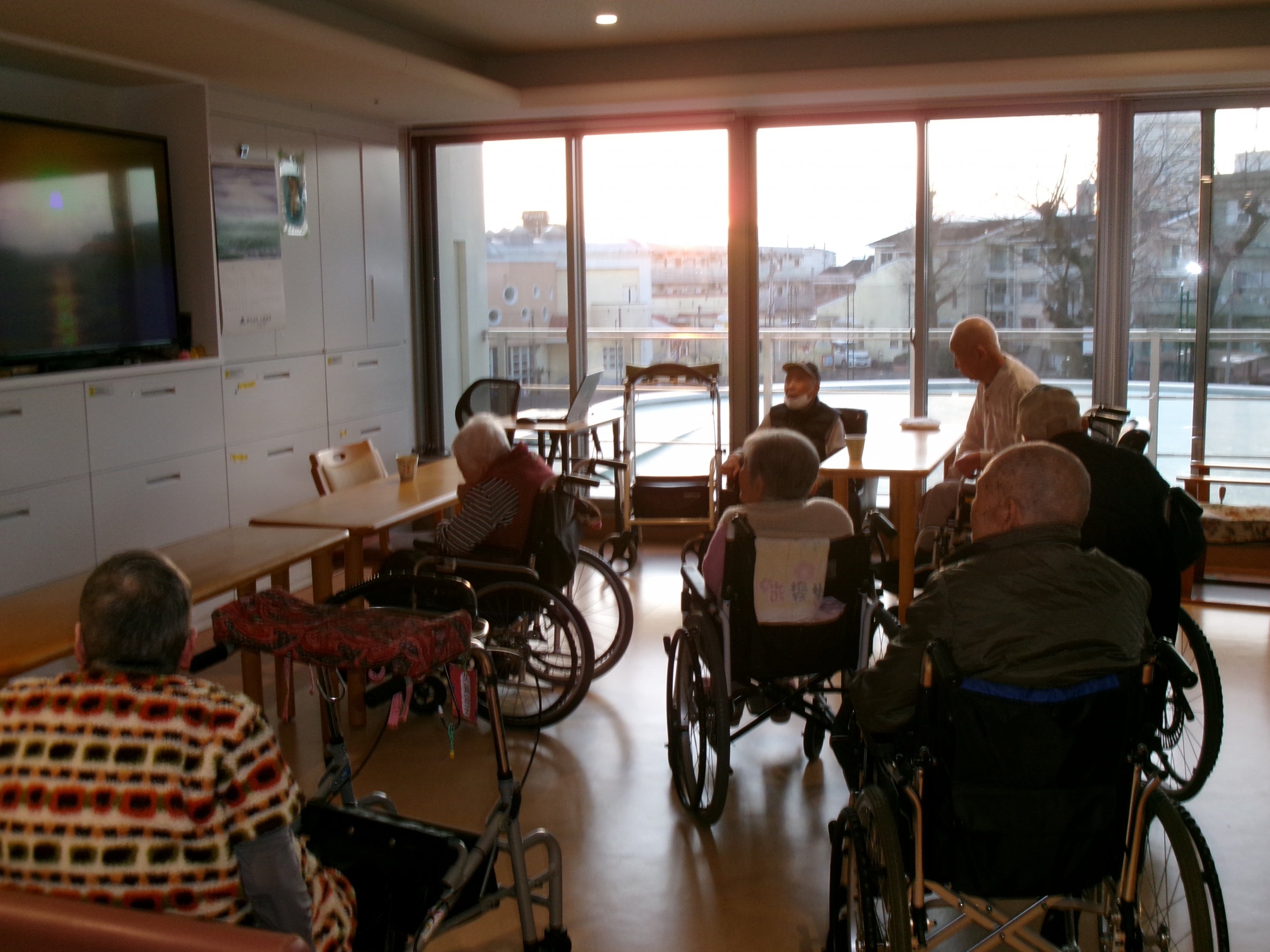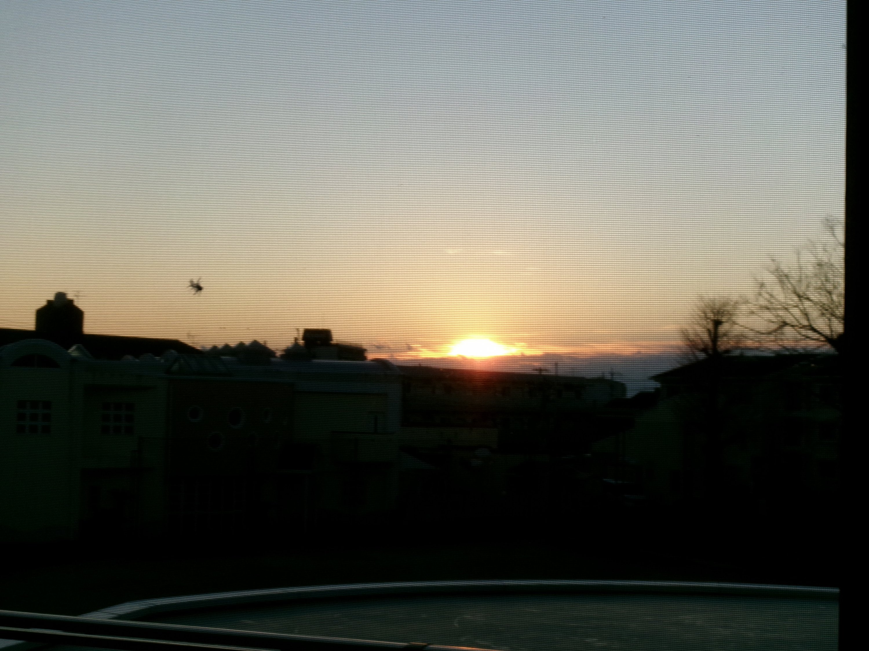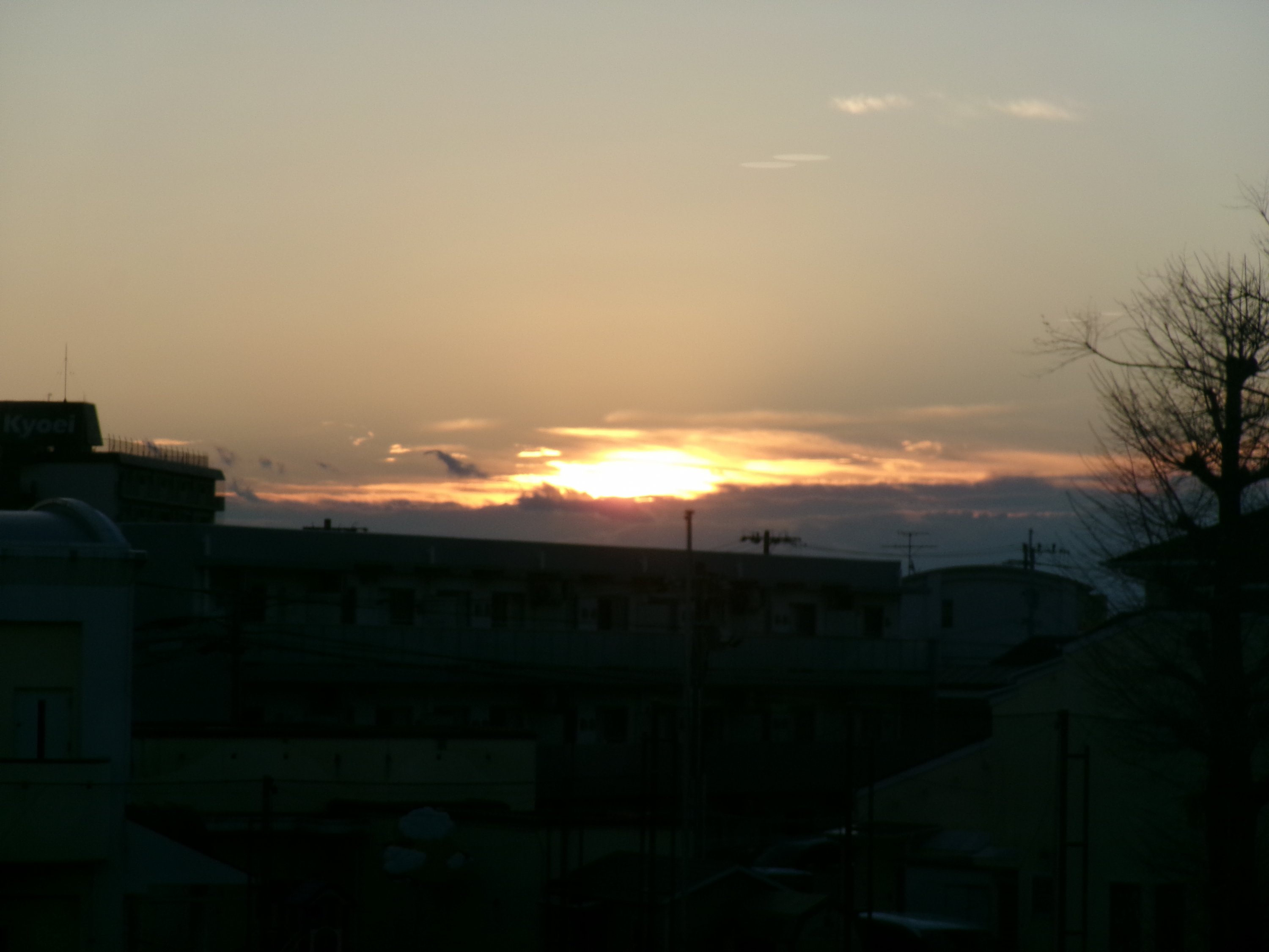 元旦の朝。食堂から朝日が昇るのが見えます。